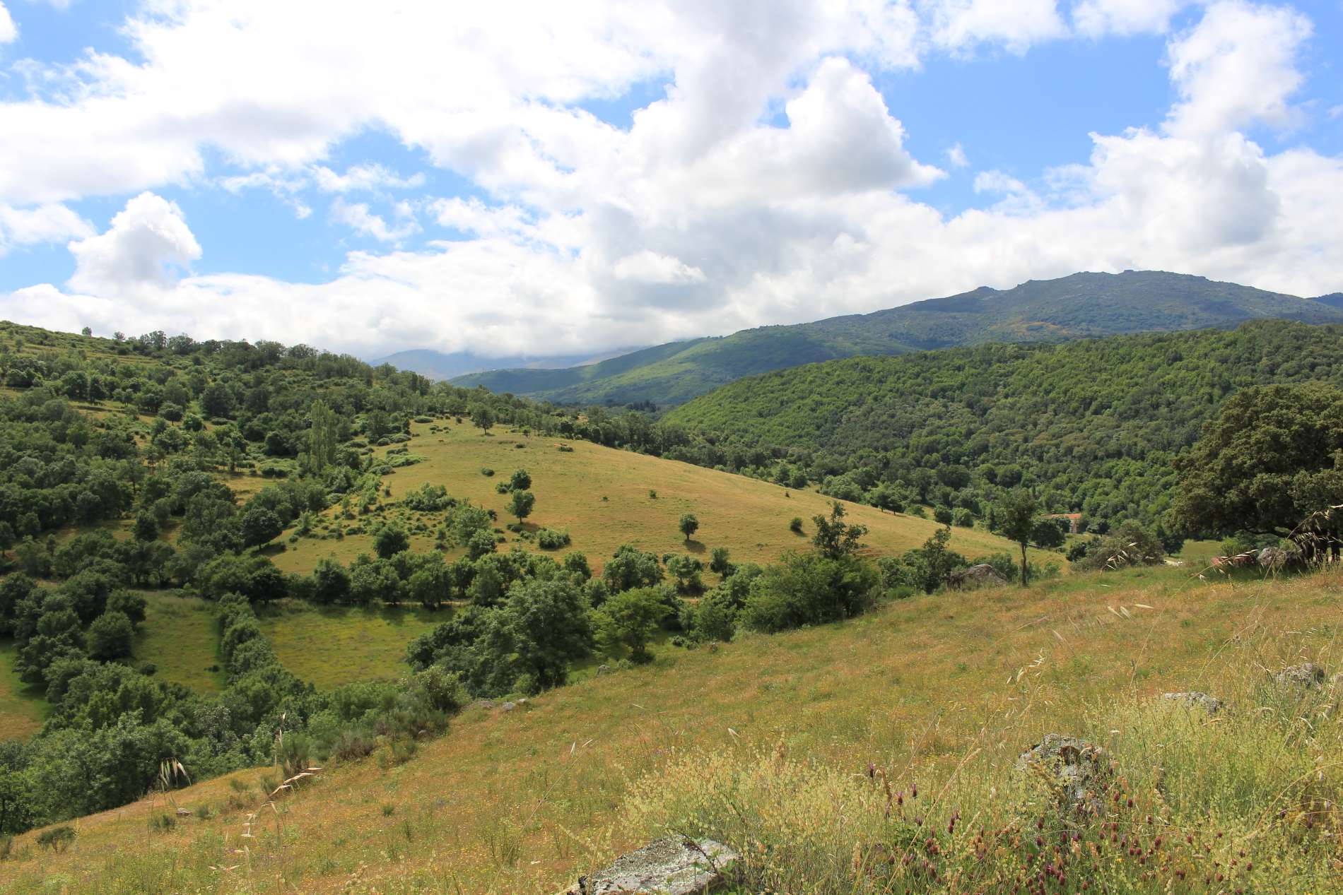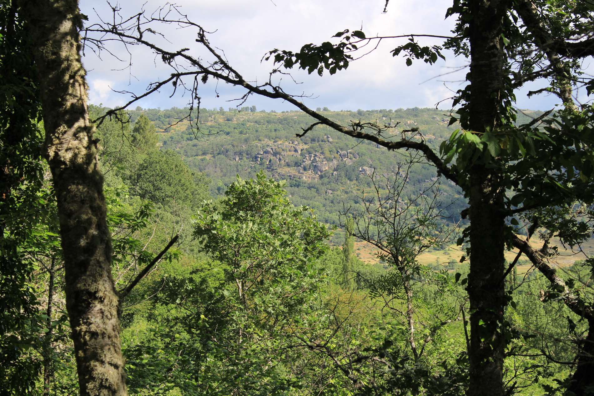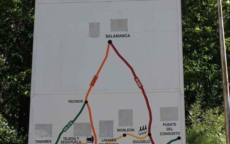 Am letzten Tag in der Extremadura offenbart diese nochmal ihre antiken Schätze. In Cáparra stehe ich vor den Ruinen der ehemaligen römischen Stadt, von der noch der beeindruckende Torbogen auf dem Wege wacht, welcher auch das Symbol dieses Weges ist. In Kastilien wechselt fast schlagartig die Natur und auch das Klima. Es ist wesentlich grüner und die Temperaturen sind merklich kühler. Die Wege sind nicht mehr weithin sichtbar, sondern schlängeln sich durch eine zunehmend bergige Landschaft. Ich laufe gemütlich durch ein Tal und lausche den Stimmen der Natur, dem Gesang der Vögel, dem rauschen des nahen Flusses und dem Wind, der seine Musik in den Blättern der Bäume spielt. Ich schaue auf die Blumen, wie sie ihren Blick auf die Sonne richten und ihrem Lauf dankbar folgen. Natürlich mache ich viele Fotos und wandere dabei, in der Geschwindigkeit meiner Seele, durch dieses fast paradiesische Tal meinem heutigen Ziel entgegen.