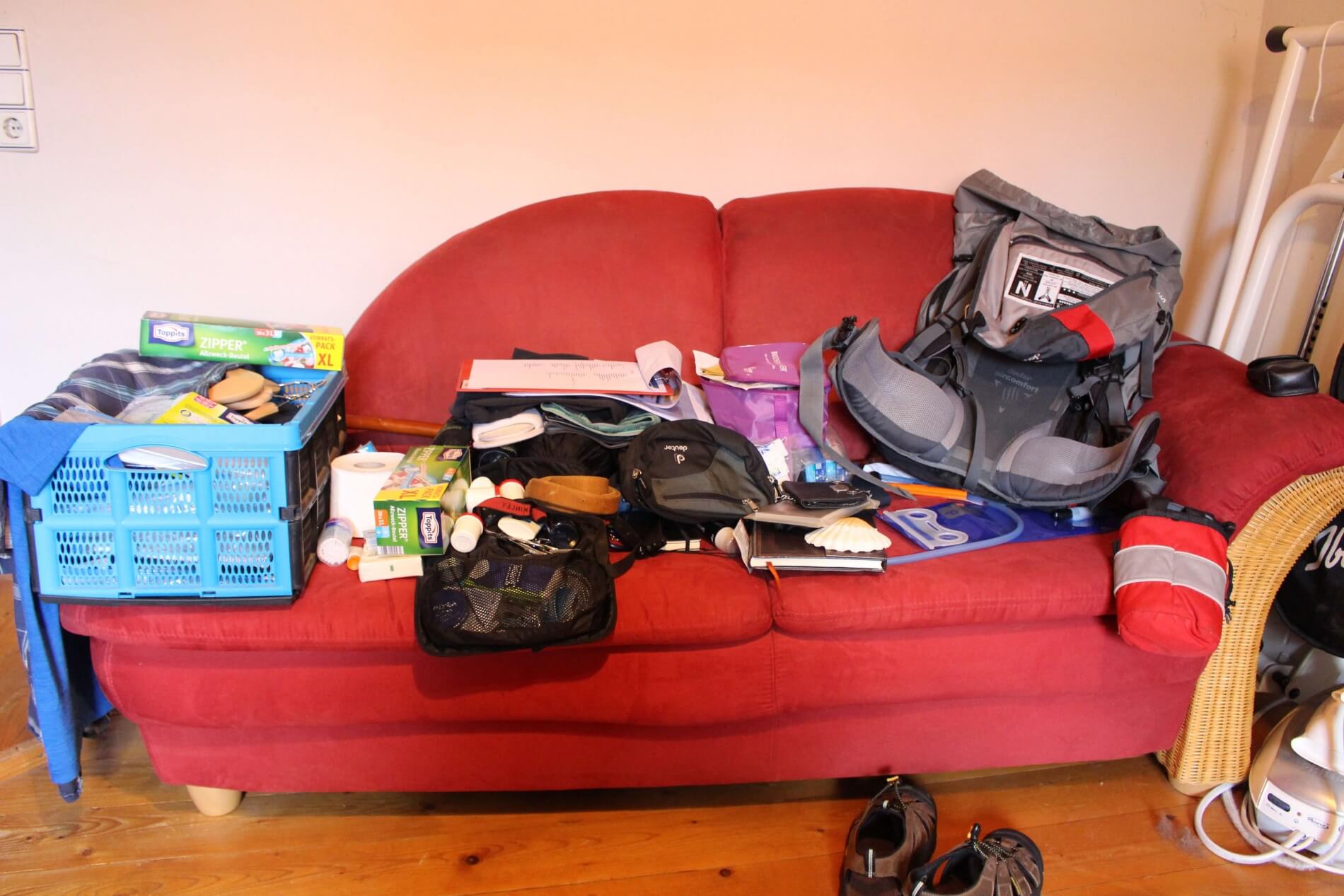 31. Mai 2016Die meisten Habseligkeiten sind eingekauft und liegen auf der Couch in meinem Schlafzimmer. Jetzt die Packliste überprüfen und alles verstauen, anschließend wird gewogen. Der Rucksack sollte nicht mehr als 10 Kg wiegen. Die Vorfreude steigt von Tag zu Tag.