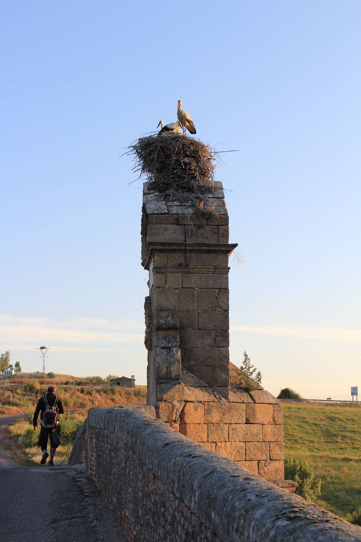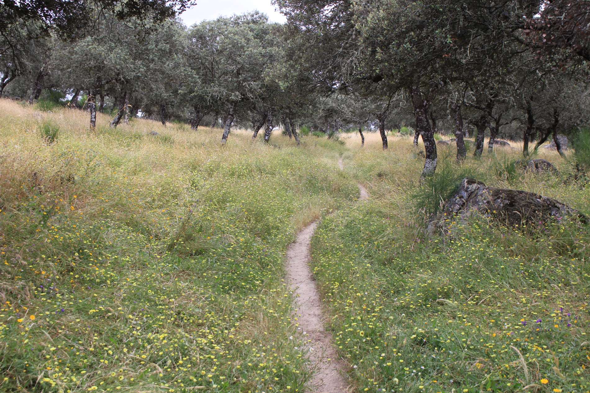 Der vorletzte Tag in der Extremadura, danach geht es in die Region Kastilien und Leon. Heute begehe ich zweifelsfrei einen der schönsten landschaftlichen Abschnitte der Extremadura. Endlose Weiden mit Steineichen und jede Menge Rinder. Auf kleinen Pfaden laufen wir durch die Weiden und oftmals stehen die Rinder direkt nebenan und beobachten uns interessiert. Der Weg ist heute ca. 28 km lang und es lohnt sich für mich etwas langsamer zu laufen, der Musik der Natur zu lauschen und viele Bilder von der einzigartigen Landschaft und den Tieren zu machen. Unterwegs sehe ich, wie ein kleiner Frosch einen aussichtslosen Kampf gegen eine Ameisen Herde führt. Tja, manchmal siegt eben doch nicht der Größere und vermeintlich Stärkere. Morgen geht es auf die Cañadas Reales, das sind alte, ca. 75 Meter breite Viehtriften, auf denen seit Jahrhunderten der Weidewechsel zwischen den Winter- und Sommerweiden vollzogen wurde.
